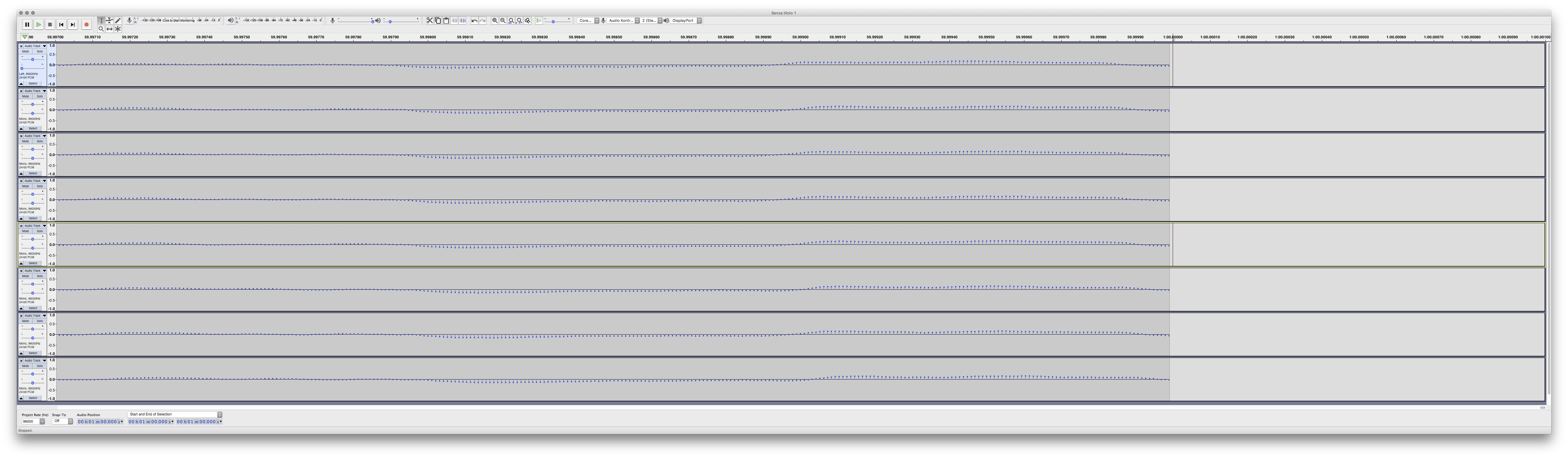 To measure the differences, the tracks will be recorded and aligned in Audacity and then the drift in timing will be measured at the 60 seconds mark.